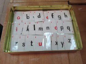 1.將小朋友比較容易犯錯的那幾個字母帶念過後放在地板上。
