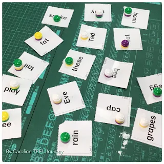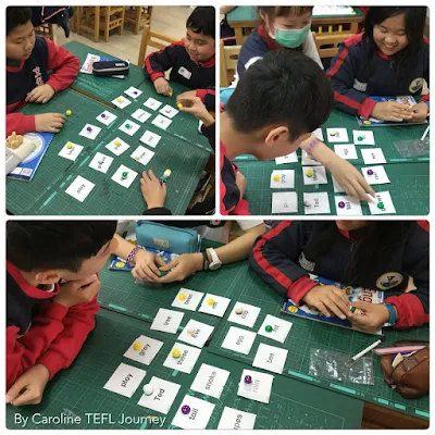 8.沒有小鋼盔者,也可以用透明花片或是籌碼代替,如下圖(這些是四年級學生正在練習課本的sight words)